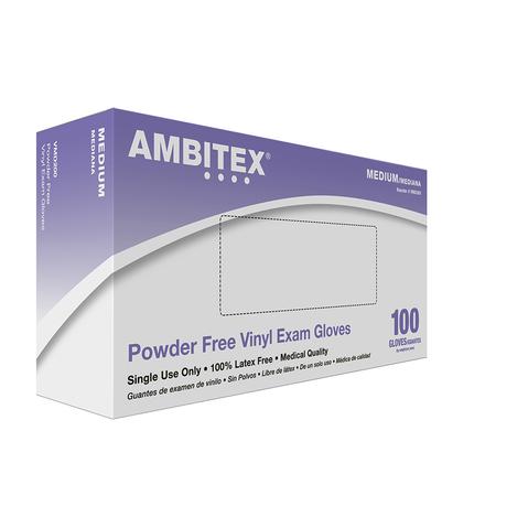 Exam gloves for protection from germs. Vinyl; latex-free. Meet or exceed ASTM and FDA exam glove standards. Non-sterile. Come 100 per box.
